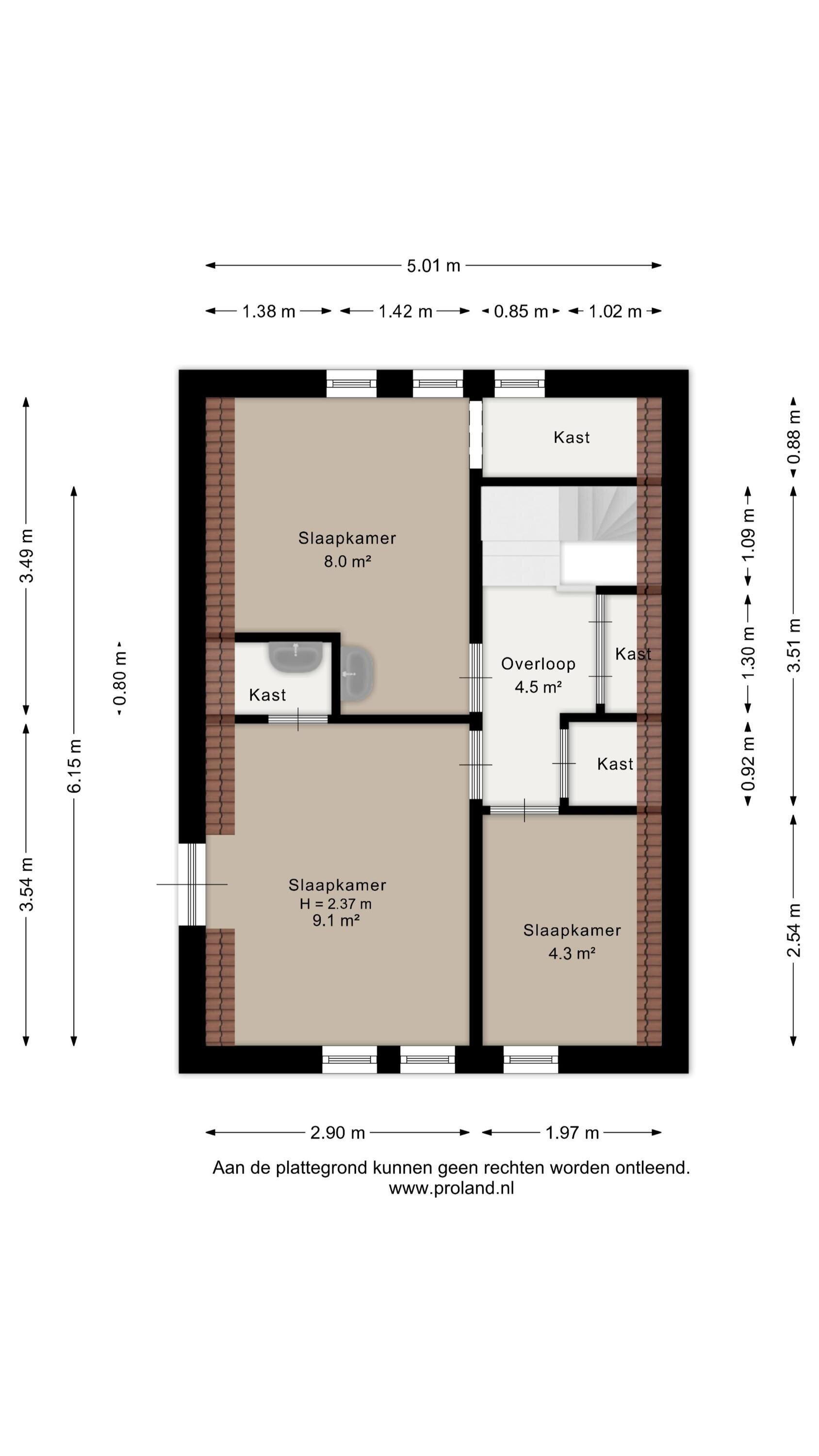 1e verdieping woning: overloop en 3 slaapkamers.